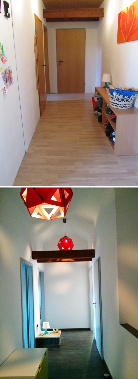Wir verlegten neuen Bodenbelag mit entsprechenden Sockelleisten, den Familie B. sich natürlich im Voraus aussuchte. Der langlebige Design-Vinyl-Belag überzeugt durch eine tolle Optik, steigert den einladende Gesamteindruck der Räume und läd zum Verweilen ein.